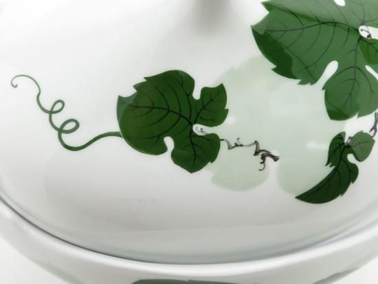マイセン ボウル■ヴァインリーフ ワインリーフ 葡萄の葉 蓋付きオーバル型ベジタブルボウル 葉 グリーン楕円 1個 Meissen