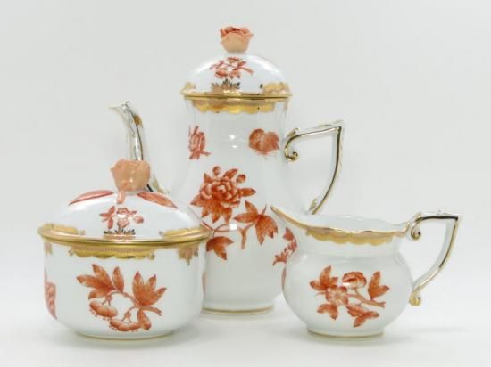 ヘレンド ヴィクトリアブーケ オレンジのコーヒーポットとシュガーポットとクリーマーになります。
