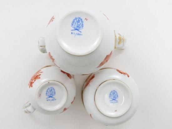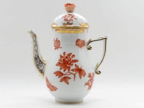ヘレンド セット■ヴィクトリアブーケ オレンジ コーヒーポット シュガーポット クリーマー 3点セット 牡丹 蝶 HEREND 1級品