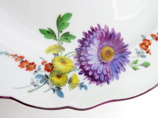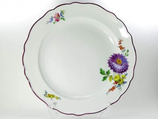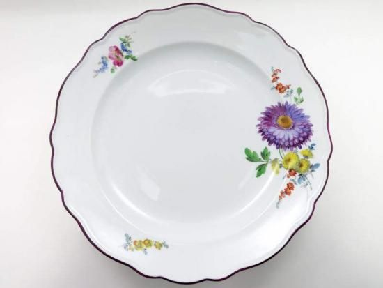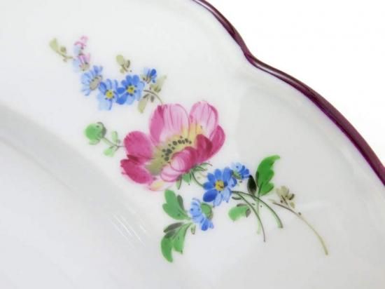 マイセン プレート■ベーシックフラワー ブーケ 三つ花 パープル サービングプレート 大 1枚 大皿 Meissen