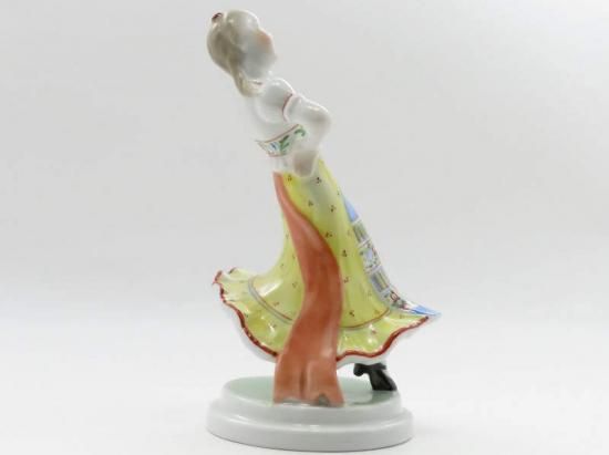 ヘレンドのフィギュリン 女性 リボンを付けた黄色の服の女の子の置物になります。