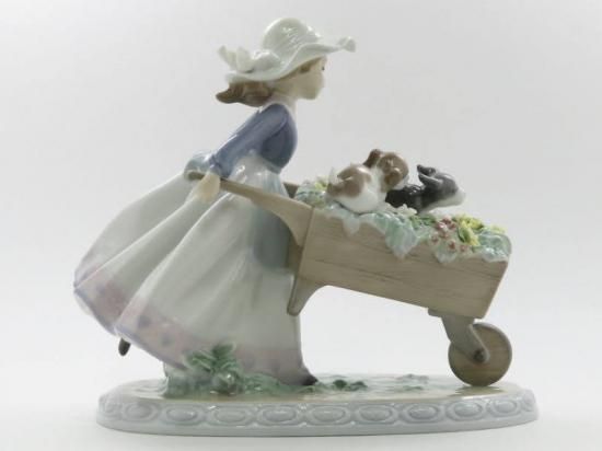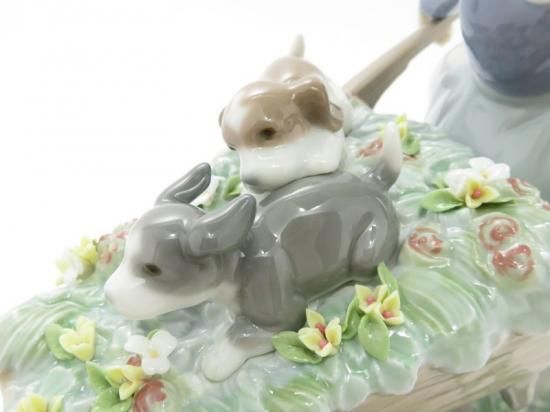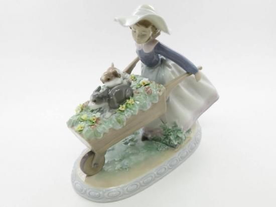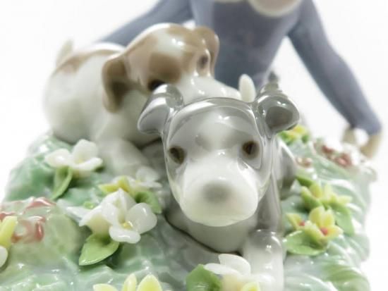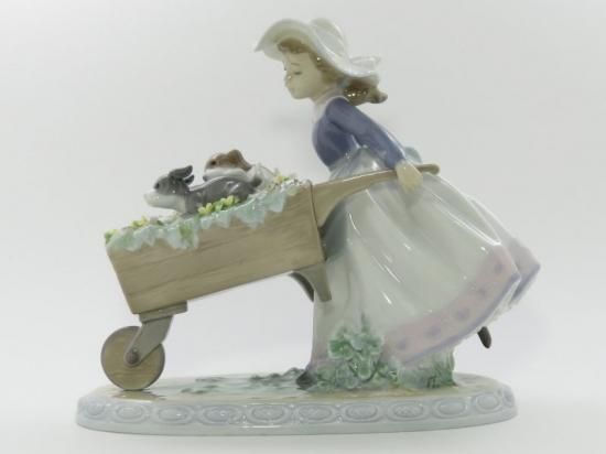 リヤドロ 置物 ■ 乗せてあげる フィギュリン 5460 犬 花 女の子 陶器人形 インテリア オブジェ 艶あり Lladro 美品