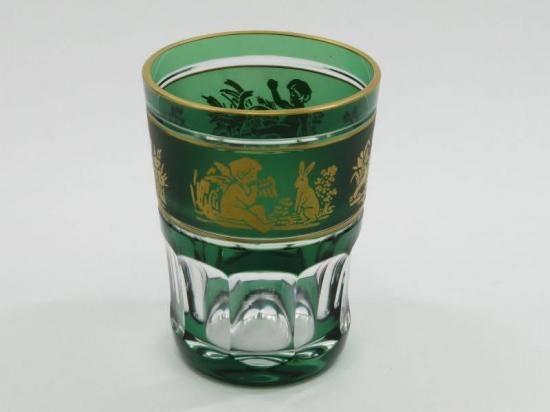 ヴァルサンランベール グラス ● サルバ ザルバ タンブラー 被せ 緑 グリーン 8.5cm 金彩 子供 鳥 ザーバ ZARBA