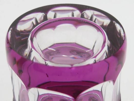 透明のクリスタルの上に色のついたクリスタルを重ねて、カットをすることで、内部の透明なクリスタルが見えるという、「被せ」という手間のかかった工程を経てできております。