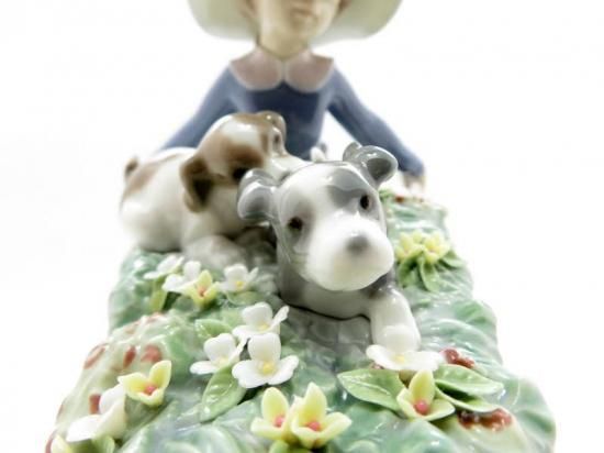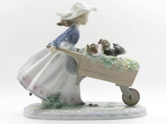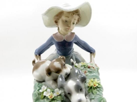 リヤドロ 置物 ■ 乗せてあげる フィギュリン 5460 犬 花 女の子 陶器人形 インテリア オブジェ 艶あり Lladro