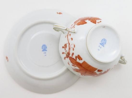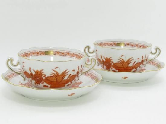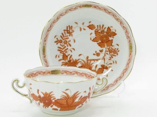 ヘレンド カップ&ソーサー■インドの華 オレンジ スープ C&S 2客セット HEREND 1級品 1