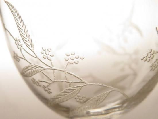 南仏などでよく見られるミモザの花をエッチングで彫り込んだ大変美しいグラスでございます。