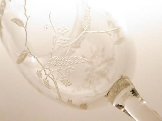 南仏などでよく見られるミモザの花をエッチングで彫り込んだ大変美しいグラスでございます。
