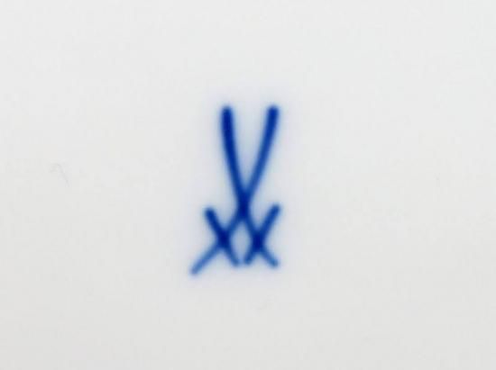 類似品が出回った為、マイセンのマークである「青い双剣」が絵柄の中に描かれているのも特徴のひとつ。
