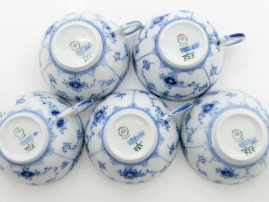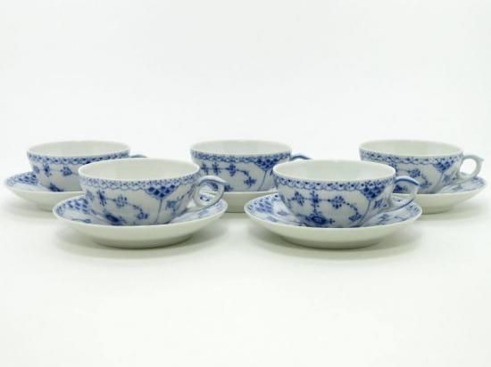 ロイヤルコペンハーゲン カップ&ソーサー■ブルーフルーテッド ハーフレース ティーC&S 5客セット 1級品