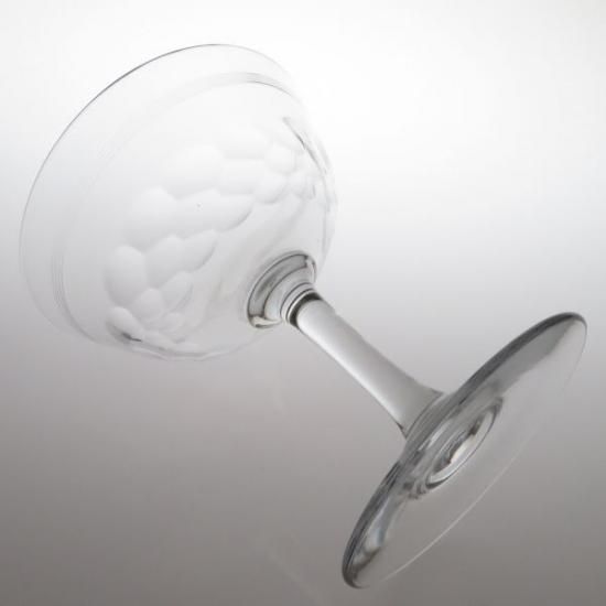 上には4本の線が、下にはうろこのようなカットがあるシャンパンクープでございます。
