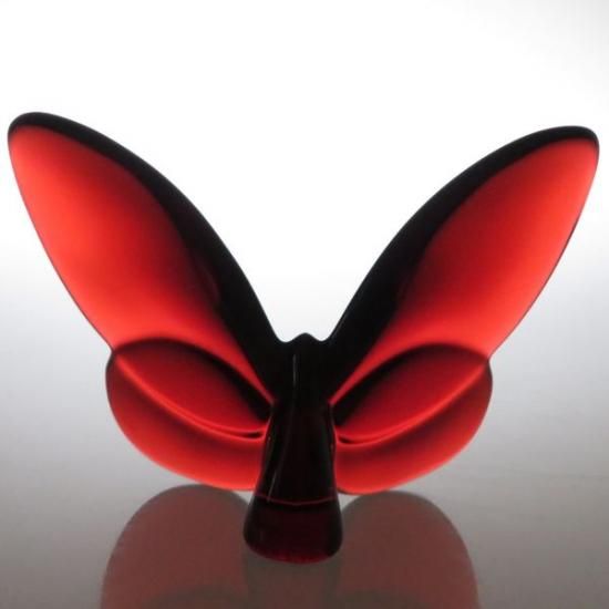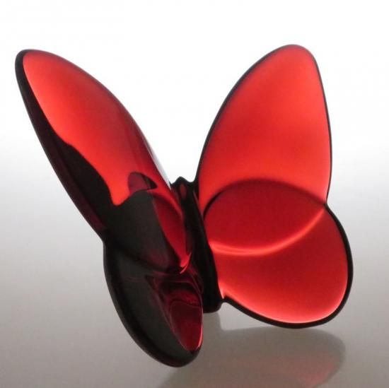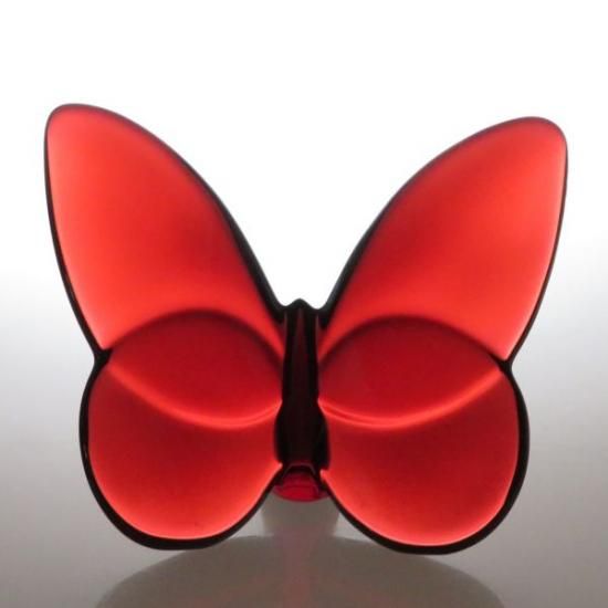 バカラ フィギュリン ● ラッキー バタフライ 蝶 レッド 赤 置物 オーナメント オブジェ クリスタル 未使用品