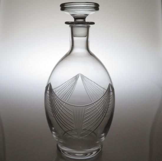アールデコ期ならではのモダンで洗練された美しいフォルムのデキャンタでございます。