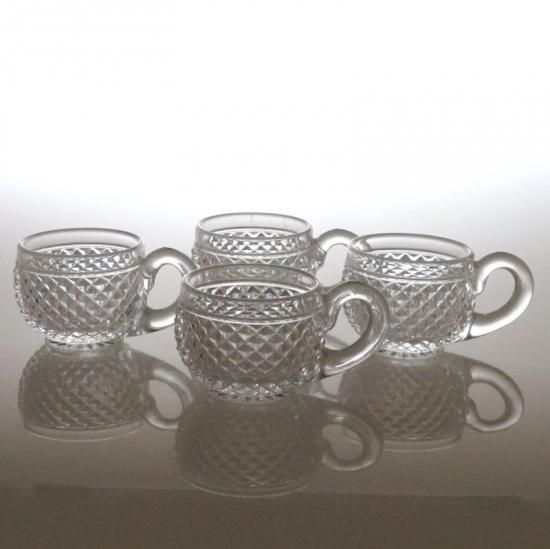 オールド バカラ グラス ● ダイヤモンドビゾー 持ち手付き ミニ カップ 4個セット コップ 3.5cm エスプレッソ Diamant Biseaux