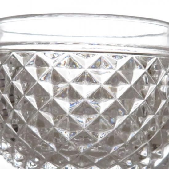 こちらのグラスはボウル部分全面がダイヤモンドのようにキラキラと輝く非常にきらびやかなグラスです。