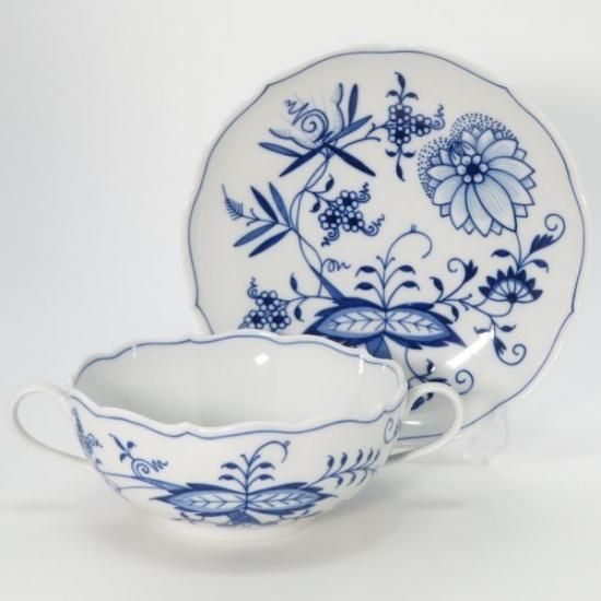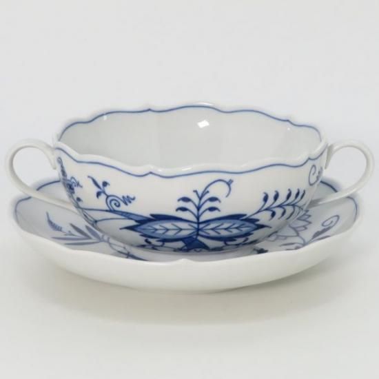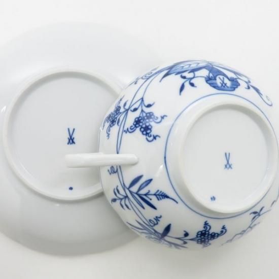 ドイツの名窯「マイセン」による、人気シリーズ「ブルーオニオン」のスープカップ&ソーサーです。