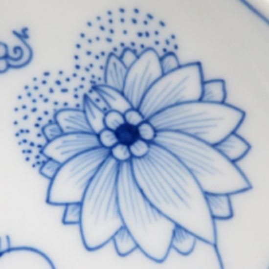 「ブルーオニオン」の名の由来は、その図案にあります。実際に描かれているのは玉ねぎではなく、ザクロや桃などを図案化したもの。当時、ザクロが玉ねぎと誤認されたことから「オニオン(玉ねぎ)」と名づけられたと言われています。